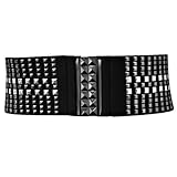 Belt is 3 inches wide, at widest point. Belt is .25 inches thick. Belt measures 30 inches long, end to end including buckle, un-stretched..../ Black Silver Studded Elastic Cinch Belt With Interlocking Closure Size Small / Women Corset